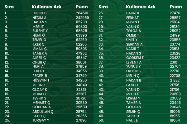 • 17 Aralık tarihine kadar sıralamada yerini alacak olan kullanıcılar kampanya sayfasında belirlenen ödülleri kazancaktır.